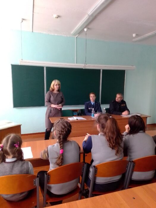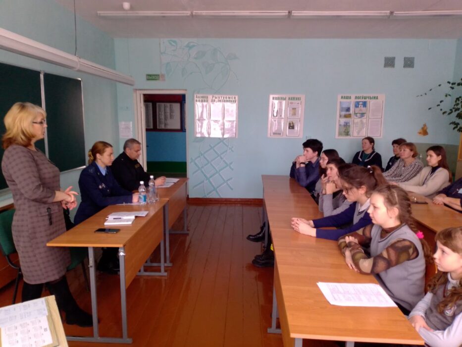 Работа по предупреждению преступлений и правонарушений среди детей и молодёжи. С этой целью организованы выступления межведомственных групп из числа сотрудников силовых структур, и иных субъектов профилактики в учреждениях образования и в трудовых коллективах района. Такая встреча с участием помощника прокурора Лоевского района Юлии Городной, Вриод начальника Лоевского РОСК Александра Ефименко и заместителя председателя КДН райисполкома Людмилы Журавской прошла на базе Чаплинской базовой школы.