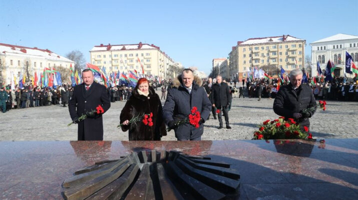 Торжество собрало на площади Славы почти 2 тыс. человек. В возложении цветов и венков к Вечному огню приняли участие руководство области и города, ветераны войны и Вооруженных Сил, представителей правоохранительных органов, трудовых коллективов и общественности, военнослужащие и молодежь. Дань уважения и памяти тем, кто стоит на страже мира и спокойствия страны, также отдали помощник Президента — инспектор по Могилевской области Леонид Мартынюк и военный комиссар региона Александр Горошкин.