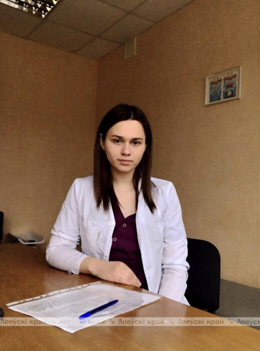 Ей только 20 лет, а она уже начинает свой самостоятельный путь. На хрупких плечах помощника врача лежит серьёзная ответственность. Ежедневно она выполняет большой объем работы: помогает принимать пациентов, занимается диспансеризацией, обслуживает вызовы, направляет к узкопрофильным специалистам, осуществляет патронаж детей, людей с инвалидностью, ликвидаторов ЧАЭС, проводит профилактические осмотры, делает прививки, забор крови и другие необходимые процедуры. Шесть из семи дней в неделю Алёна проводит на работе, в том числе в местной школе, где она выполняет обязанности медицинской сестры. Но это совсем не мешает ей основательно обживаться в наших краях. Совсем недавно она завела домашнего питомца — белоснежного шпица по кличке Оскар.