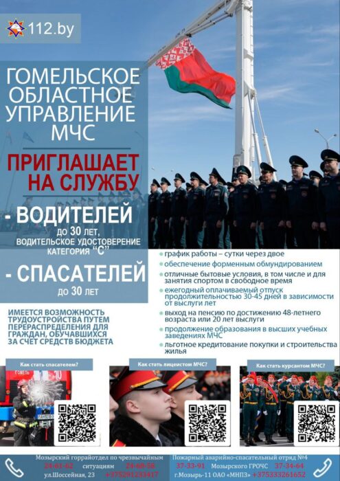 Инфографика 15.03.202327.04.2023 ГОМЕЛЬСКОЕ ОБЛАСТНОЕ УПРАВЛЕНИЕ МЧС ПРИГЛАШАЕТ НА СЛУЖБУ Опубликовал: Лоевский край