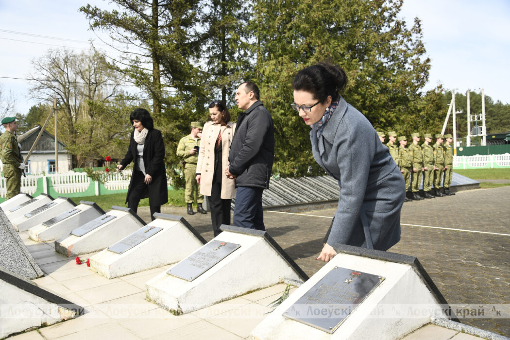 Участники мероприятия посетили братское захоронение в Деражичах. Именно здесь, недалеко от Днепра, обрели свой покой более 2 тысяч воинов, отдавших свои жизни за независимость нашей Родины, в их числе 12 Героев Советского союза. Представители районной вертикали возложили цветы к монументу и почтили память павших минутой молчания.