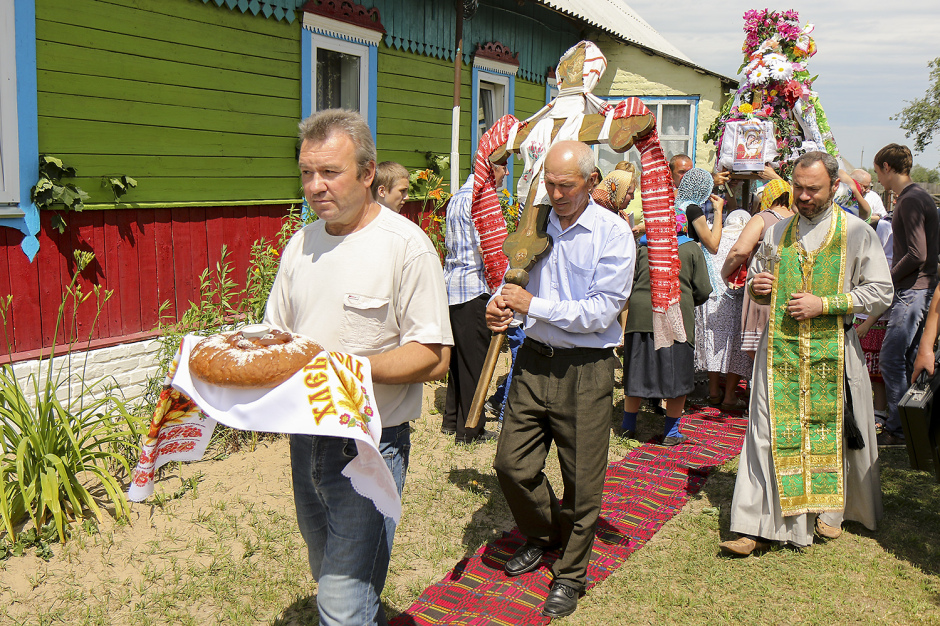 Действо напоминает крестный ход. Во главе процессии несут три ритуальных предмета: свечу, икону и большой деревянный крест. Дорогу устилают домотканым полотном. Батюшка освящает колодец новых хозяев, после этого вода в нем тоже считается святой. Дом со свечой становится для деревни чем-то вроде церкви: его двери всегда распахнуты для гостей.