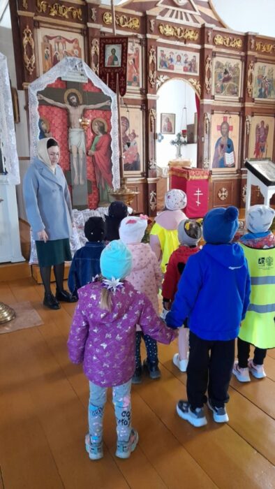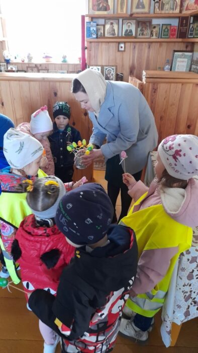 19 апреля дошколята посетили Храм Святой Живоначальной Троицы г.п. Лоев. Ребята совместно с координатором Лоевского благочиния Людмилой Карпенко еще раз вспомнили евангельские события Пасхальных дней, а так же узнали, почему Храм в эти праздничные дни украшен в белые и красные цвета. В подарок ребята получили Пасхальные яйца, один из главных символов Пасхи.