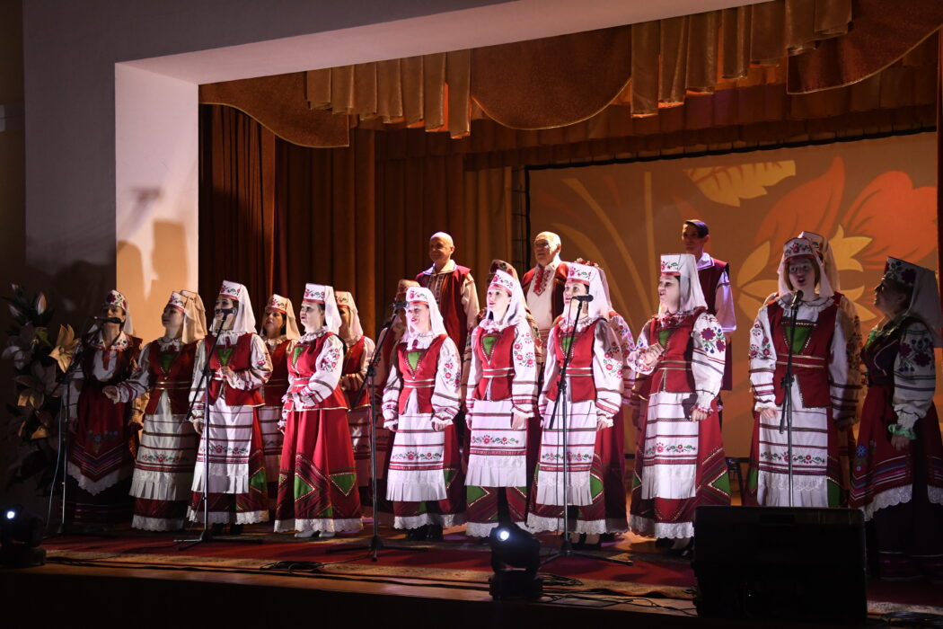 В городском центре культуры прошел красочный и масштабный отчетный концерт творческих коллективов Лоевского района «Квітней, цвіці, старонка дарагая!». На сцене развернулось настоящее театрализованное представление с песенными и танцевальными элементами, пронизанное духом патриотизма и любовью к малой родине.