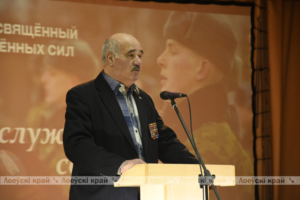 Виновников торжества поздравили председатель районного Совета депутатов Ирина Пастухова, начальник обособленной группы военного комиссариата (Лоевского района) Илья Щевкун, председатель РО ОО «Белорусский союз ветеранов войны в Афганистане» Хачик Мирзикян и настоятель прихода храма Покрова Пресвятой Богородицы иерей Михаил Иванов.