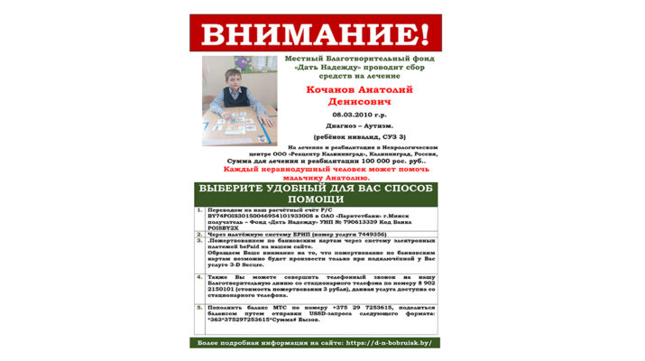 КУЛЬЧИЦКОЙ ПОЛИНЕ НУЖНА ВАША ПОМОЩЬ
