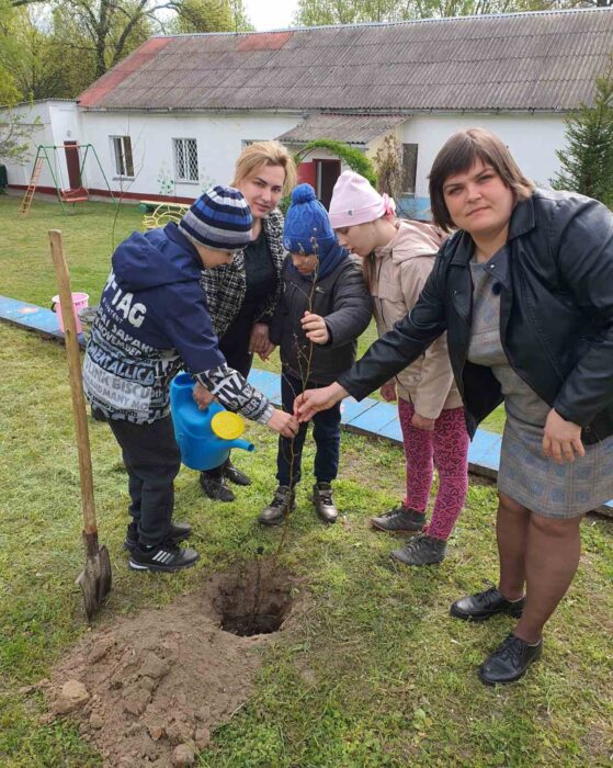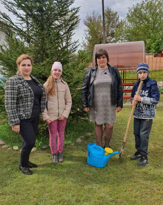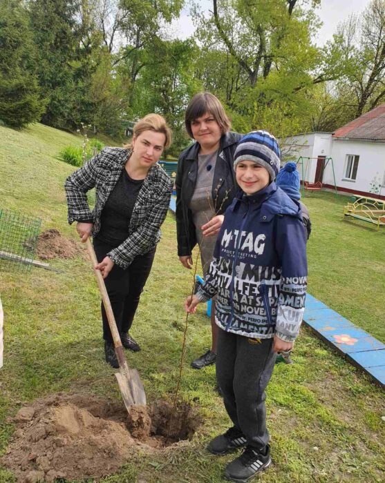 В рамках акции «Сад Надежды» на территории ЦКРОиР главный специалист отдела образования, спорта и туризма Лоевского райисполкома Мария Коваль, директор ЦКРОиР Елена Петрусевич, воспитанники центра приняли участие в посадке деревьев и кустарников на прилегающей территории учреждения.
