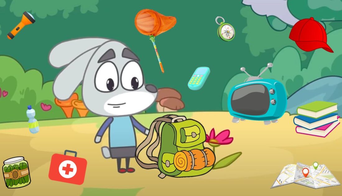 Задание 2. Еще одно место, где можно интересно провести теплый летний денечек — это лес. Отправиться на пикник или на сбор ягод и грибов, что может быть лучше!? Однако перед походом в лес, стоит основательно подготовиться. Помоги нашему зайчику взять с собой в рюкзак только полезные в походе предметы.