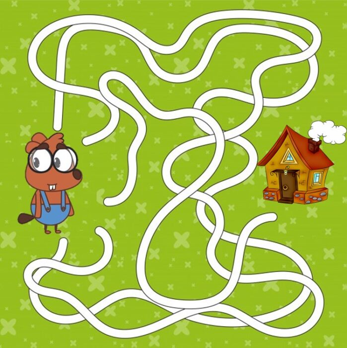 Задание 5. Наш помощник так увлёкся тушением, что совсем забыл, по какой дорожке он сможет вернуться домой. А вы знаете, что делать, если вы заблудились в лесу? Если нет, то запоминайте: самое главное — не паниковать! Прислушайтесь, если вы услышите шум машин или идущий поезд, идите на звук. Если вокруг тишина, ищите линии электропередачи, просеки и тропинки. Идите вдоль них и вы обязательно выйдете к городу. Если на пути повстречался ручей или река, следуйте вниз по течению — они всегда приведут к людям. Но если у вас не получается выйти, позвоните по телефону МЧС 112 и сообщите, из какого населенного пункта и какого района вошли в лес, опишите, что видите по сторонам. Спасатели вас точно отыщут и вернут домой! Запомнили? Тогда давайте поможем выйти из леса нашему Бобру.