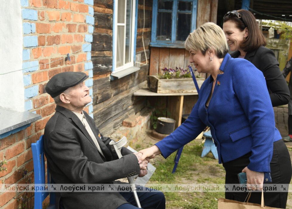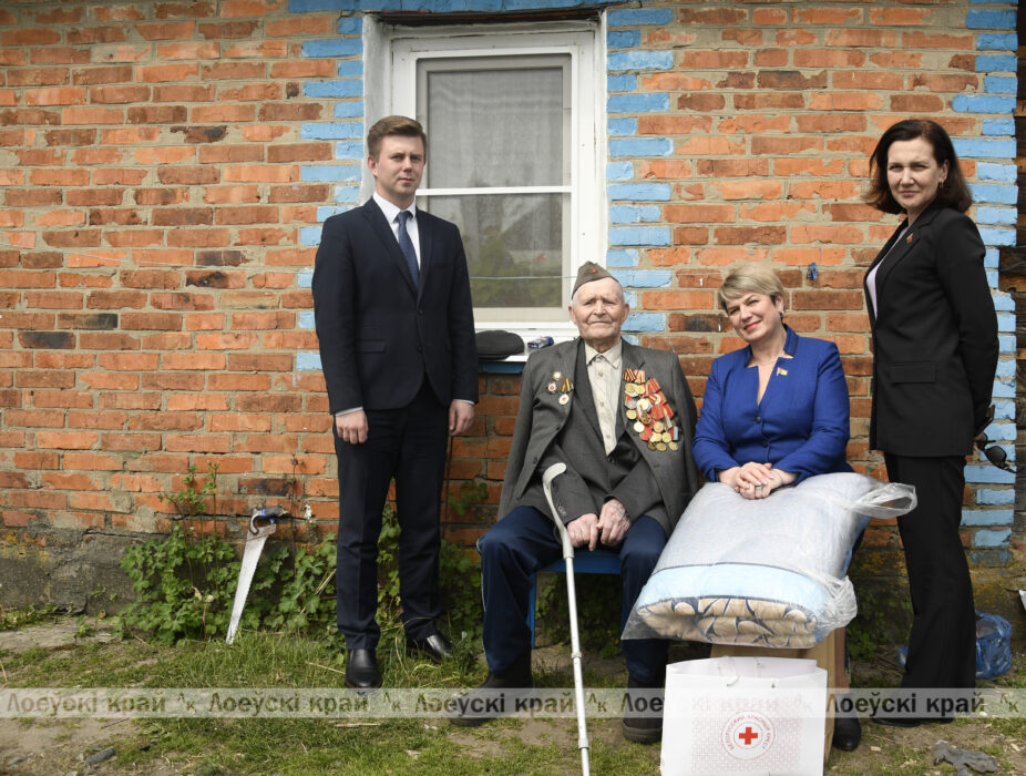 Жанна Чернявская вместе с представителем Гомельской областной организации Белорусского Общества Красного Креста вручили герою войны подарки и поблагодарили за Великую Победу.