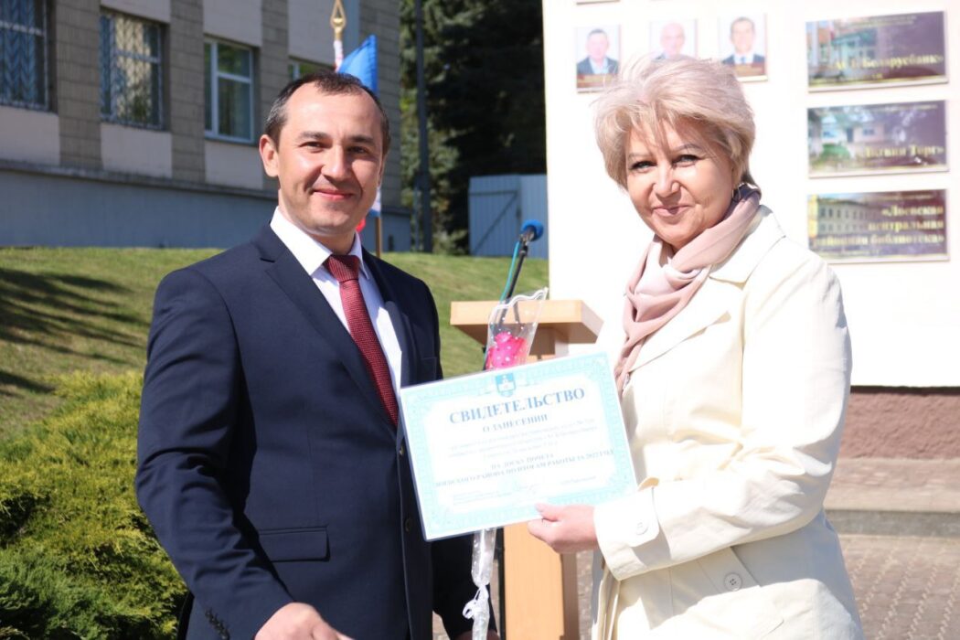 Ярким моментом праздника стала торжественная церемония разрезания красной ленты в знак открытия обновлённой районной Доски Почёта. Это почётное право было предоставлено председателю районного исполнительного комитета Олегу Таргонскому, председателю Лоевской районной организации Белорусского общественного объединения ветеранов Тамаре Башлаковой и дипломанту заключительного этапа республиканской олимпиады по учебным предметам «Белорусский язык» и «Белорусская литература», VII областного лингвистического конкурса «Ведай родную мову», победителю областного конкурса риторического мастерства «Гавары са мной па-беларуску», учащейся 10 класса средней школы им. А.В. Козлова Юлиане Худолей.