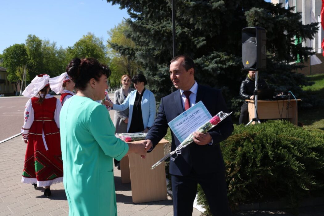 Под громкие аплодисменты председатель райисполкома Олег Таргонский вручил лучшим труженикам и трудовым коллективам региона за достижение наивысших показателей в соответствующих отраслях экономики и социальной сферы по итогам 2022 года сертификаты о занесении на районную Доску Почёта.