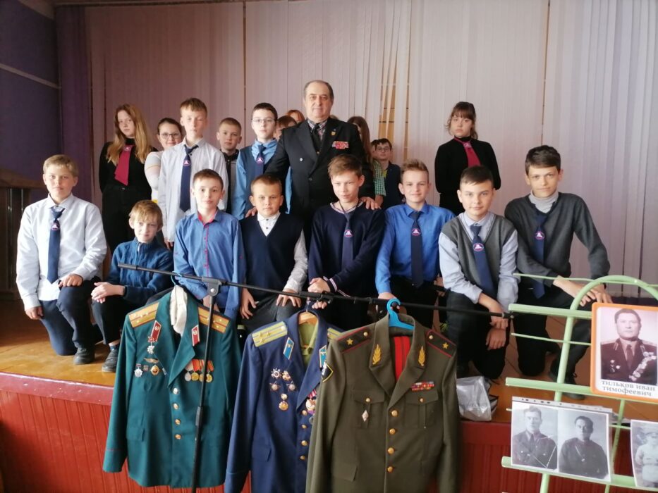 В рамках мероприятия с учащимися 7 классов средней школы им. А.В. Козлова встретился первый секретарь Коммунистической партии Беларуси Лоевского района Олег Бодров, который рассказал о героическом пути своего дедушки, полковника авиации, уроженца д. Хоминка Ивана Тимофеевича Тилькова. На импровизированный выставке ребята смогли увидеть его китель с наградами, а также армейские кители самого Олега Александровича и его сослуживца Сергея Куценко, начальника Новосибирского военного института, фотографии военных лет. Участники встречи ещё раз пролистали страницы Великой Отечественной войны, затронули события, связанные с героическим освобождением Беларуси. О. Бодров рассказал школьникам о системе наград времён 1941-1945 гг. Ордена и медали за героизм и мужество… История каждого из них необъятна.