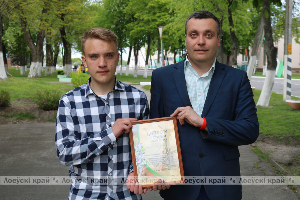 Исследовательская работа «Первый партизанский парад на Лоевщине — первый партизанский парад Беларуси» учащегося 9 класса Сутковской средней школы Лоевского района Антона Позняка, подготовленная под руководством учителя истории Андрея Колоса, была удостоена диплома III степени в секции «Партизанское движение». «Выбирая тему доклада, мы хотели рассказать общественности об интересных и памятных страницах истории Лоевщины. В октябре-ноябре 1942 года партизаны Сидор Ковпак и Александр Сабуров совершили рейд по Полесью, чтобы активизировать местное население на борьбу с оккупантами. Разгромив гарнизон полиции в Лоеве, партизаны на время взяли контроль над территорией горпосёлка. 7 ноября по улицам райцентра прошёл парад, посвящённый событиям великой Октябрьской революции. В советские времена это был один из важнейших праздников СССР. Такое мероприятие способствовало укреплению морального духа не только солдат, но и местных жителей. В свете современных попыток переписать историю мы поставили перед собой цель сохранить правду и донести её до других. Как сказал известный белорусский классик Василий Быков, память о кровавых испытаниях в прошлой войне есть лучший гарант мира и существования разных народов на нашей земле», — поделился своими убеждениями молодой талантливый педагог.