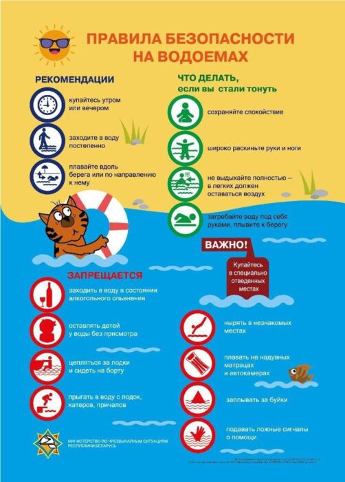 — не заплывать за буйки или пытаться переплывать водоемы.