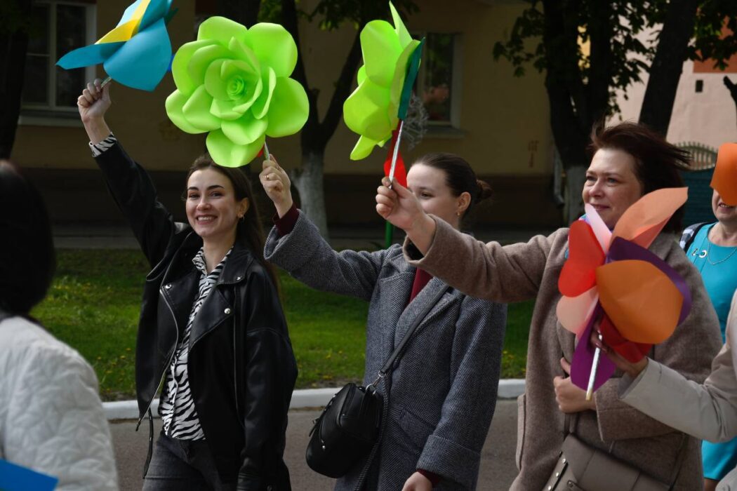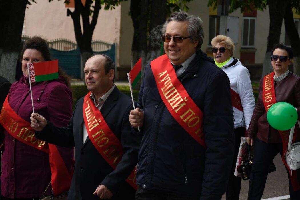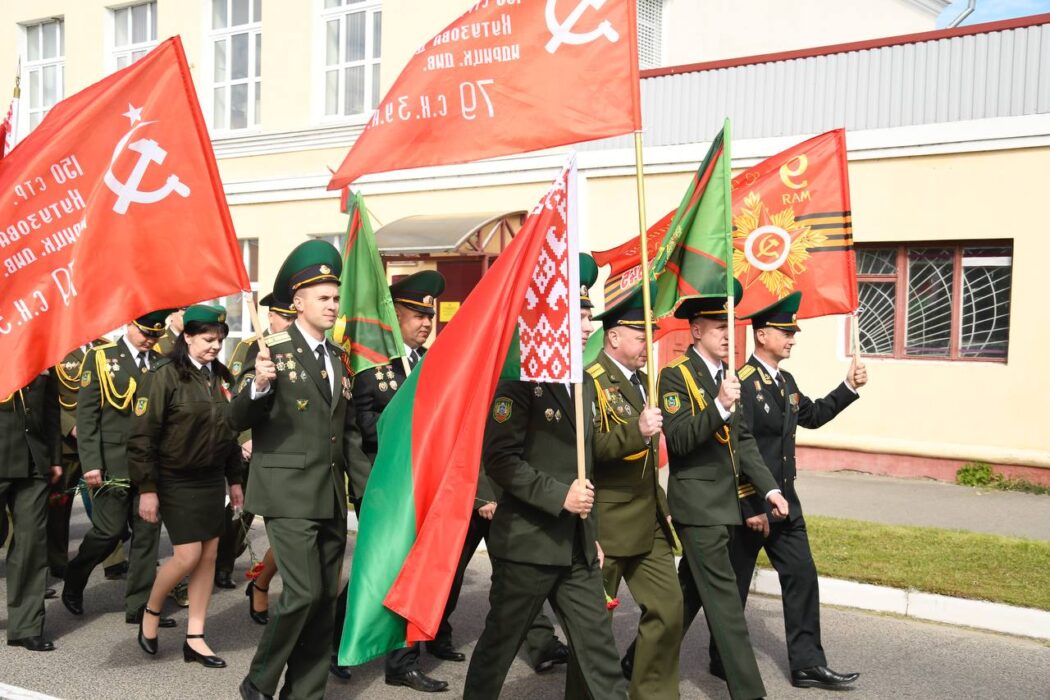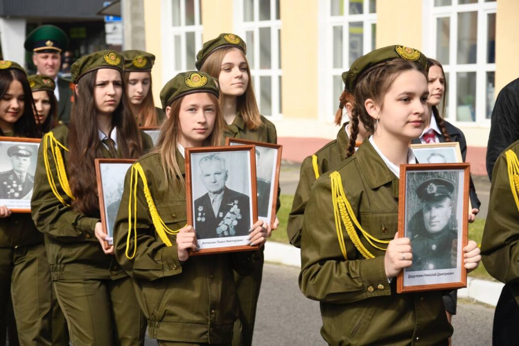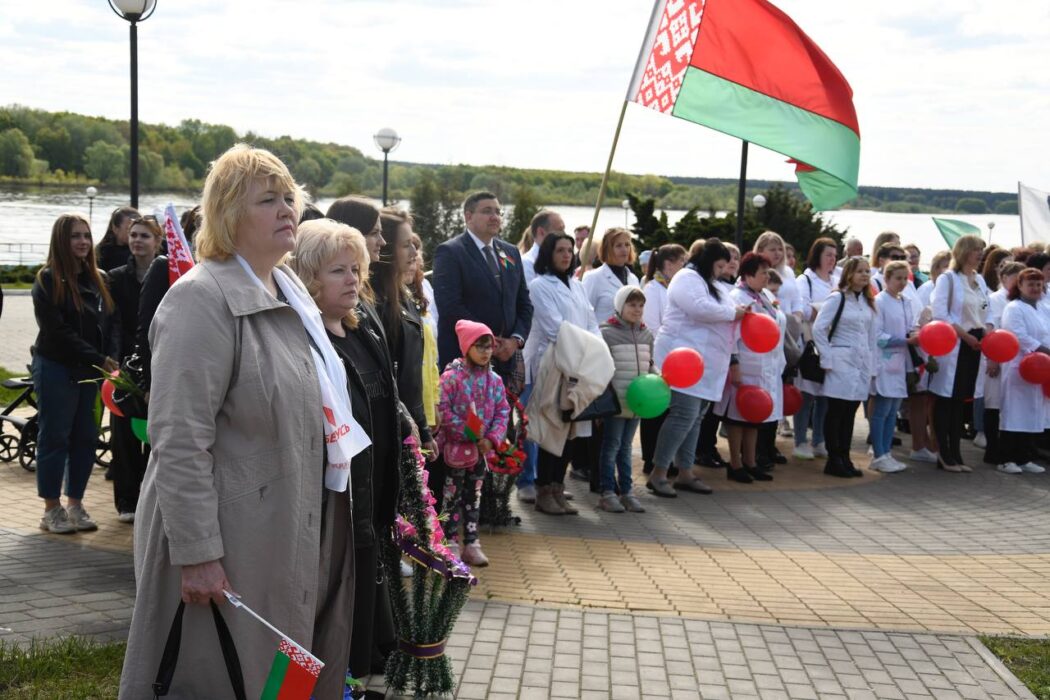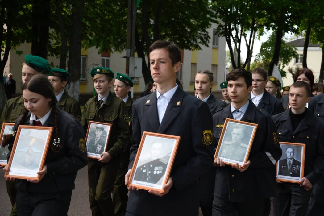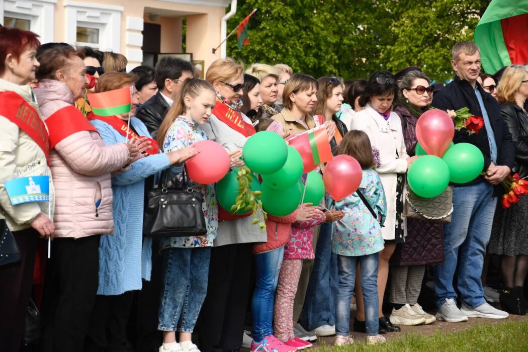 Празднование Дня Победы стартовало торжественным шествием представителей районной вертикали, общественных организаций, трудовых коллективов, молодежи. Колонна прошла от Беларусбанка к центральной площади. В ровном строю, раскрашенном государственными флагами, воздушными шарами и цветами, многие несут портреты своих родных и близких, тех, кто приближал долгожданную победу.