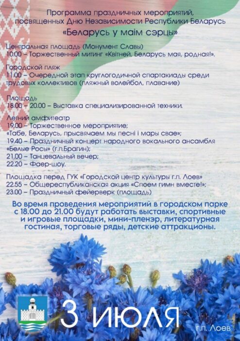 Инфографика 28.06.2023 ПРОГРАММА ПРАЗДНИЧНЫХ МЕРОПРИЯТИЙ КО ДНЮ НЕЗАВИСИМОСТИ В Г.П. ЛОЕВ Опубликовал: Лоевский край