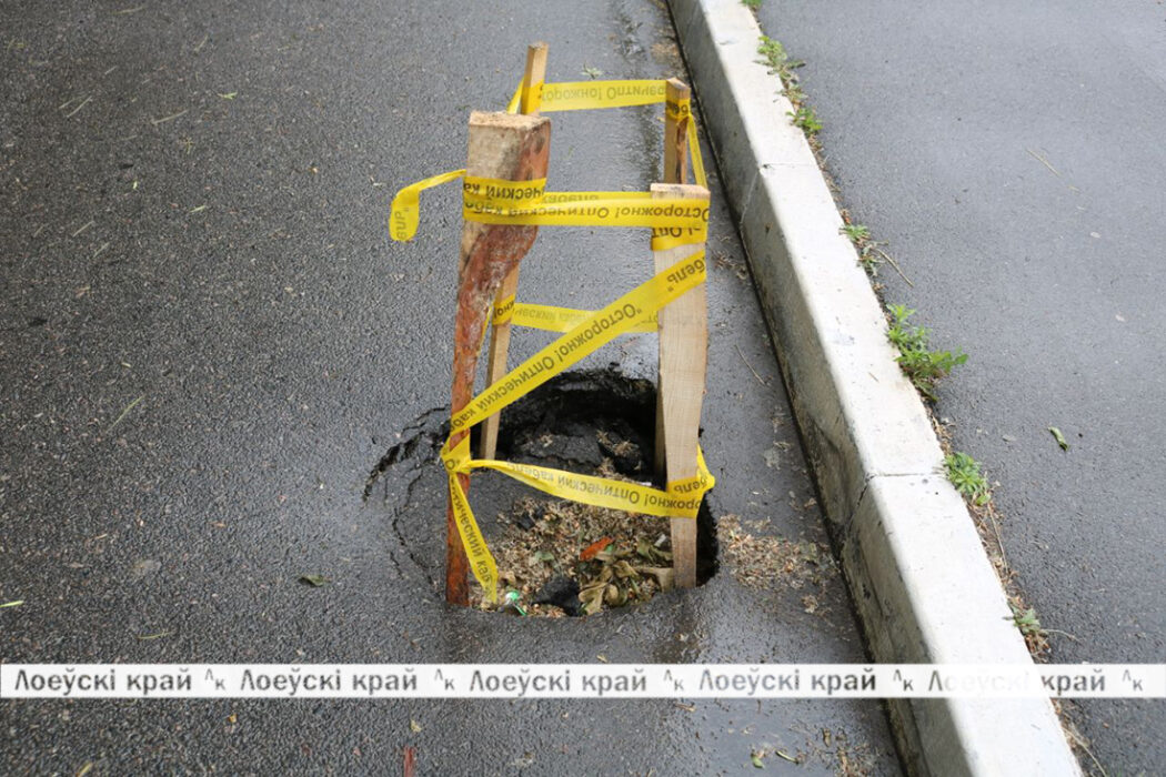 Лето, солнце, зелень, птички поют — идёшь и наслаждаешься видами городского парка. Только вот не всем лоевчанам комфортно перемещаться по прилегающей к нему дороге. На проезжей части, аккурат возле кафе «Натали» образовалась приличной глубины выбоина. «Хорошо хоть предупреждающие вешки поставили, ещё пару дней назад их там не было», — первое, что подумалось при её виде в очередной раз. Возраст промоины недели, две, не меньше, глубина — около метра. Она представляет реальную опасность для жизни и здоровья граждан, особенно в тёмное время суток. Надеемся, что коммунальщики в кратчайшие сроки отреагируют на нашу публикацию и обеспечат безопасность автомобилистов и пешеходов на этом участке ул. Шевелева.