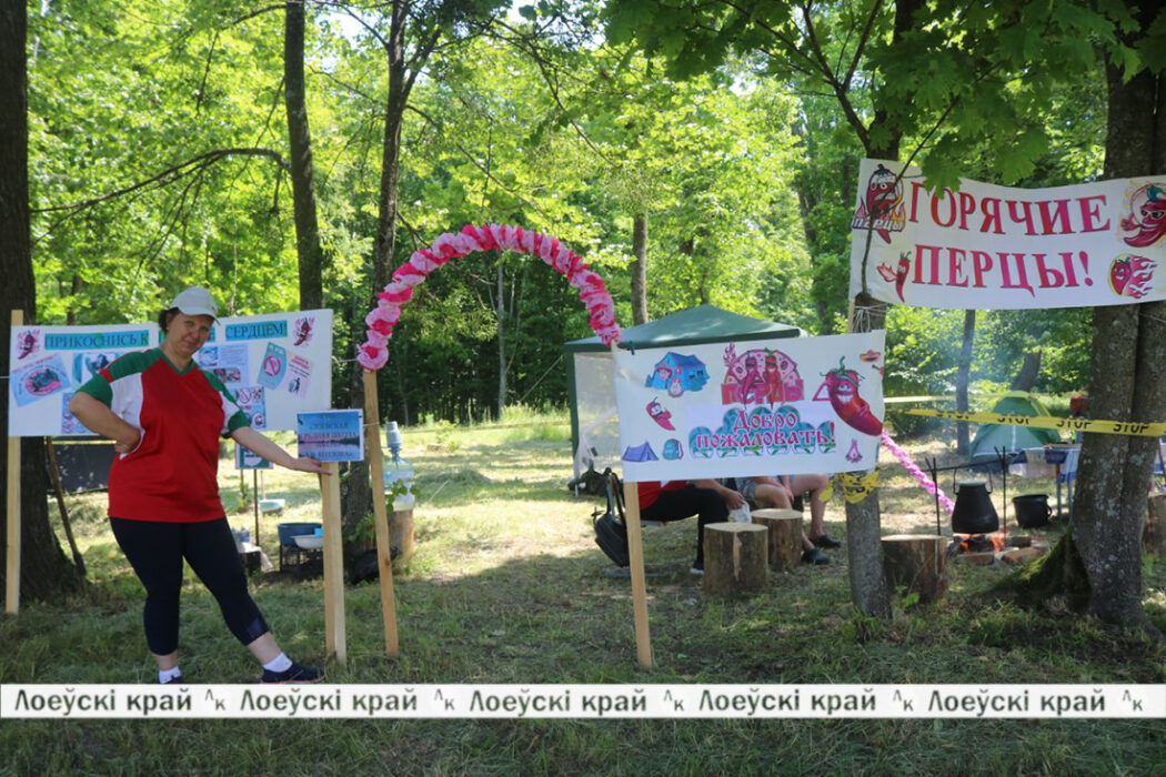 Оригинальным оказался и конкурс на лучший палаточный лагерь. Командам предстояло не только обустроить свой бивуак, но и его презентовать. Немаловажным условием было не забыть о содержании, ведь жюри оценивало не только быт туристов, но и то насколько соблюдены правила безопасности при его оборудовании. Палаточный городок, развернувшийся в лесу, показал, что участники потрудились на славу, проявив изобретательность, креативность и богатую фантазию. Так, участники команды «Елки-палки» (лесхоз) все продумали до мелочей: обустроили тропу релакса, оборудовали место отдыха, а набирались сил после соревнований в кафе «Ешкинкот». «Земляки» (сельсоветы) благоустроили свой палаточный лагерь с сельским колоритом. «Патриоты» (педколледж) встречали гостей в белорусских традициях — с хлебом-солью. Команда «Горячие перцы» (средняя школа А.В. Козлова) оформила тантамареску «Турслет-2023», которая так и манила сделать пару-тройку фото. «Неудержимые» из районной гимназии с юмором подошли к раздельному сбору мусора: здесь и питательный пластик, и деревянное стекло, и бумажный металл и даже смешные отходы. В этом конкурсе первое место заслуженно досталось команде «Елки-палки».
