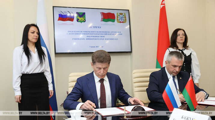 ГОМЕЛЬСКАЯ ОБЛАСТЬ И ПРИМОРСКИЙ КРАЙ ПОДПИСАЛИ ПРОТОКОЛ О НАМЕРЕНИЯХ СОТРУДНИЧЕСТВА