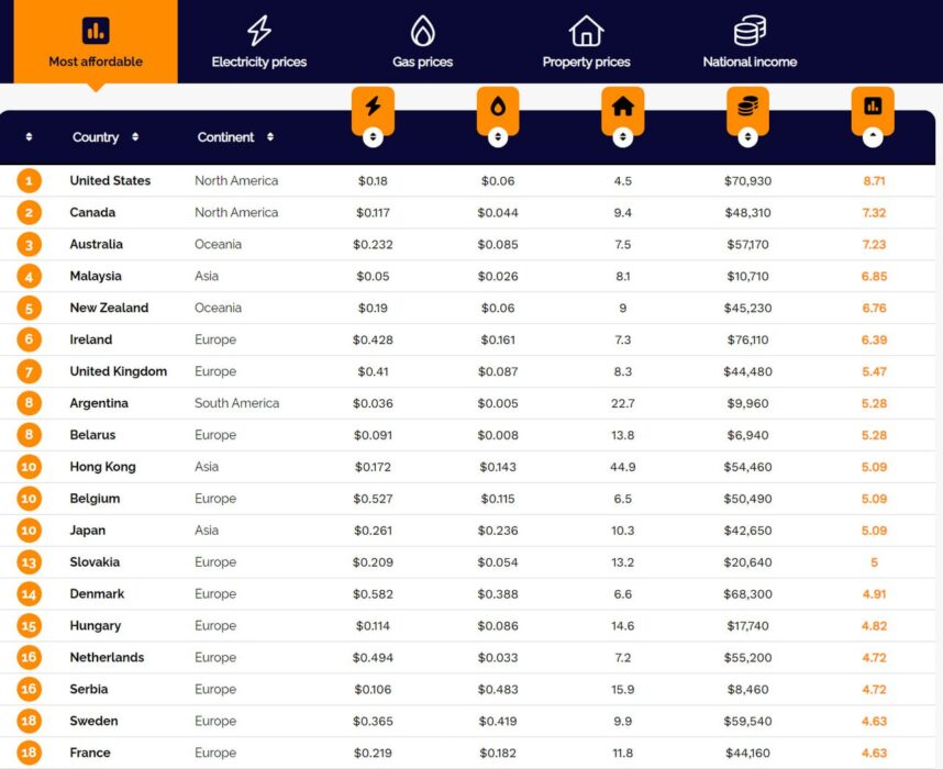В основе рейтинга такие факторы, как цены на электроэнергию, газ, стоимость недвижимости, среднемесячная зарплата. Он показывает перспективность страны для возможного переезда и жизни, чтобы компенсировать растущую во всем мире инфляцию.