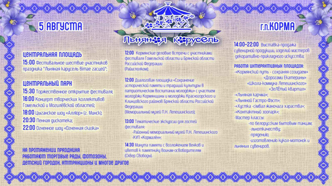 В Корме пройдет фестиваль «Льняная карусель»