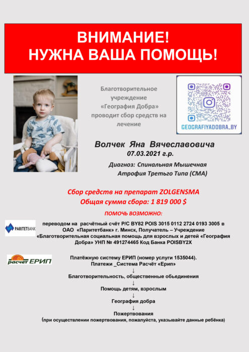 Минздрав Республики Беларусь не предусматривает выделение средств на лечение этой болезни, поэтому у родителей последний шанс собрать всю сумму самостоятельно за весьма короткий срок. Но они не справятся одни, сумма непосильна для семьи.