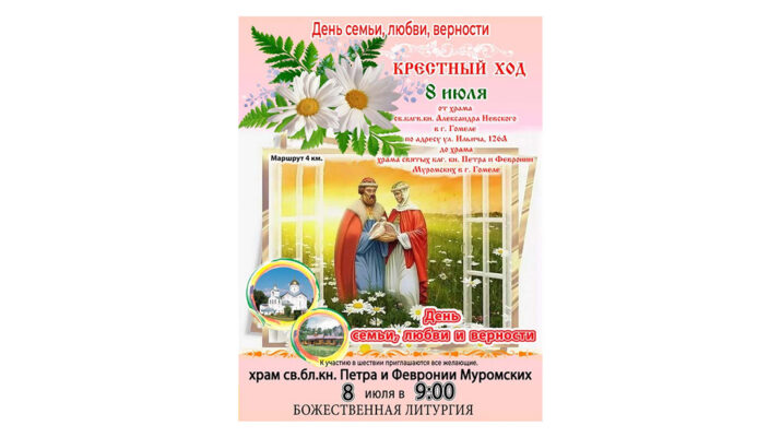 В ГОМЕЛЕ 8 ИЮЛЯ ПРОЙДЕТ КРЕСТНЫЙ ХОД В ДЕНЬ ПАМЯТИ СВЯТЫХ ПЕТРА И ФЕВРОНИИ МУРОМСКИХ