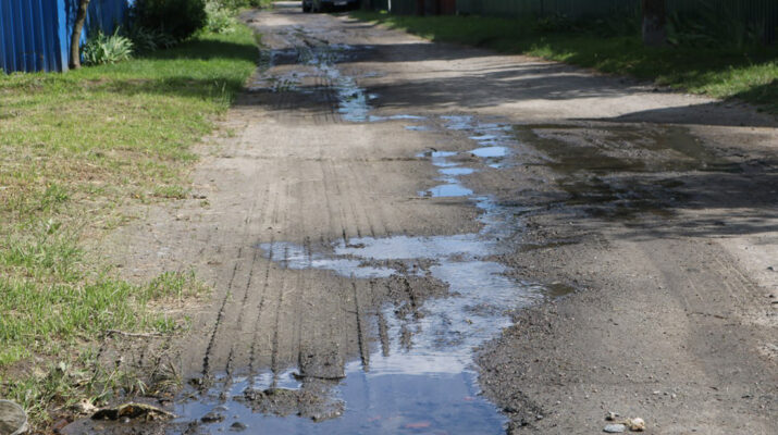 И снова порыв. На этот раз довольно древний, но устойчивый ручей бежит по улице Константинова. Поломка этого канализационного колодца, по словам жителей улицы, длится