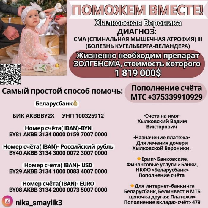 Благо Твори! 17.08.202317.08.2023 ДАВАЙТЕ ВМЕСТЕ ПОМОЖЕМ МАЛЕНЬКОЙ ВЕРОНИКЕ ХЫЛКОВСКОЙ Опубликовал: Лоевский край