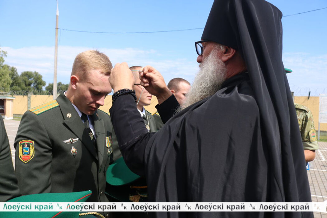 Благословил молодых лейтенантов на верное служение Отечеству настоятель Прихода храма иконы Божией Матери «Всех скорбящих Радость» Лоевского благочиния протоиерей Александр Пригара. Он отметил, что в самые тяжёлые времена пограничники всегда первыми вставали на защиту Отечества, так как в душе каждого из них всегда была и есть вера в победу. Каждый из офицеров-выпускников получил в этот торжественный день не только благословение батюшки, но и личный нательный крестик.