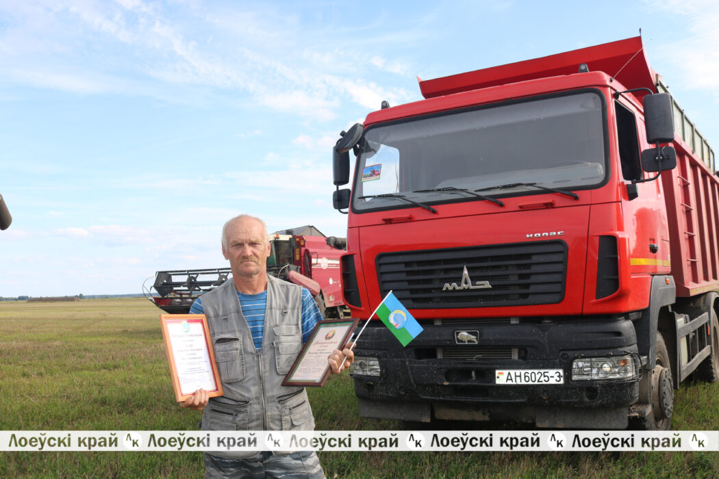 Уборочная на Лоевщине продолжает набирать обороты. Все, кто задействован в битве за урожай нынешнего года, знают: главное не замешкаться и убрать хлеб в кратчайшие сроки и без потерь. Благодаря своему усердию и трудолюбию хлеборобы добиваются высоких результатов на жатве. На минувшей неделе определились и первые «тысячники». Заветный рубеж в 1000 тонн обмолоченного зерна преодолели водители Николай Карпенко из КСУП «Малиновка-Агро» и Егор Гудковский из ОАО «Колпень-Агро», а действующий лидер-тысячник Владимир Колос из ОАО «Урожайный» перевёз уже более 2000 тонн.