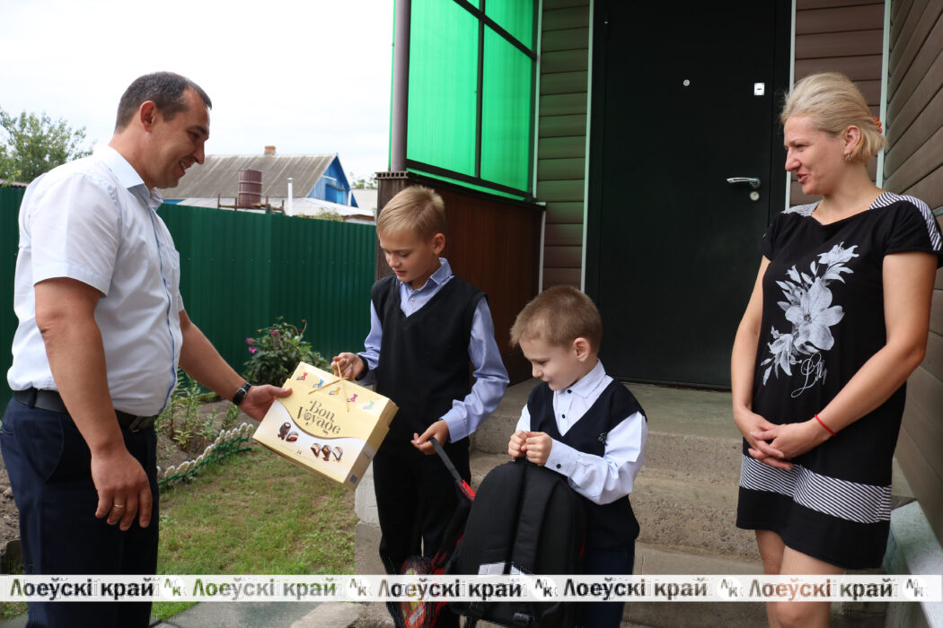 Лоевчане Наталья и Пётр Ребенок воспитывают трёх сыновей. По словам мамы, управляться с ними не сложно. К тому же, все они самостоятельные: каждое утро застилают постели, помогают по дому. Старший, Илья, в этом году поступил в Гомельский политехнический колледж. Поэтому первого сентября в школу пойдут двое ребят. Председатель Лоевского райисполкома Олег Таргонский вручил  не только ранец со всеми необходимыми канцелярскими принадлежностями, а также  сладости к чаю и игровой набор для активного досуга. Олег Викторович пожелал ребятам хороших отметок, а семье — оставаться здоровой и счастливой.