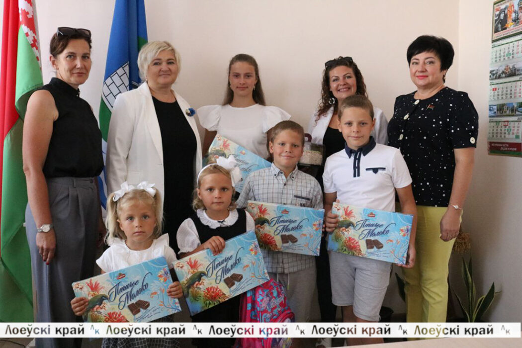 Управляющий делами облисполкома, председатель областной организации ОО «Белорусский союз женщин» Елена Кличковская и член Совета Республики Национального собрания Беларуси, председатель областной организации БОКК Алла Смоляк поздравили многодетную семью Гаврильковых с наступающим Днём знаний. Вместе с рюкзаком, наполненным школьными принадлежностями, ребята получили и сладкие подарки.