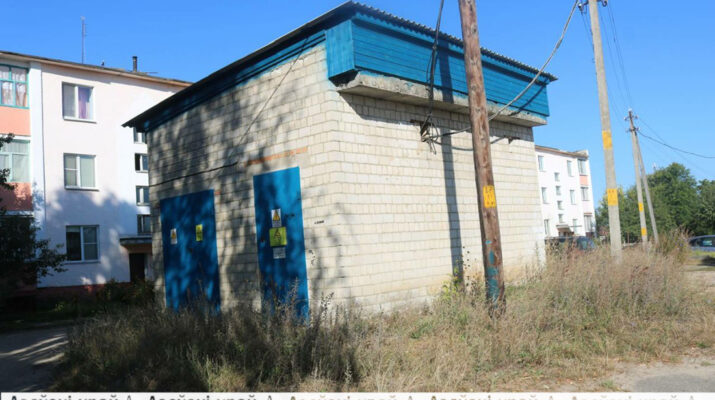 Во дворе многоэтажной застройки по ул. Ленина в объектив корреспондентов районной газеты попала трансформаторная подстанция. По всему периметру она заросла травой, в некоторых местах