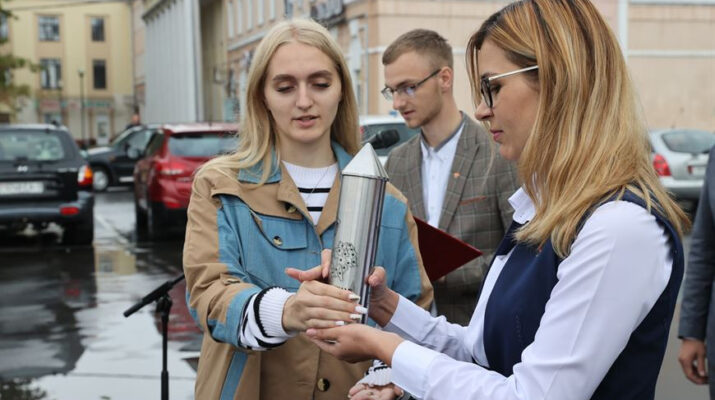 ГОМЕЛЬСКАЯ МОЛОДЕЖЬ ПЕРЕДАЛА В КОРМУ КАПСУЛУ С ЗЕМЛЕЙ ИЗ МЕСТ БОЕВОЙ СЛАВЫ