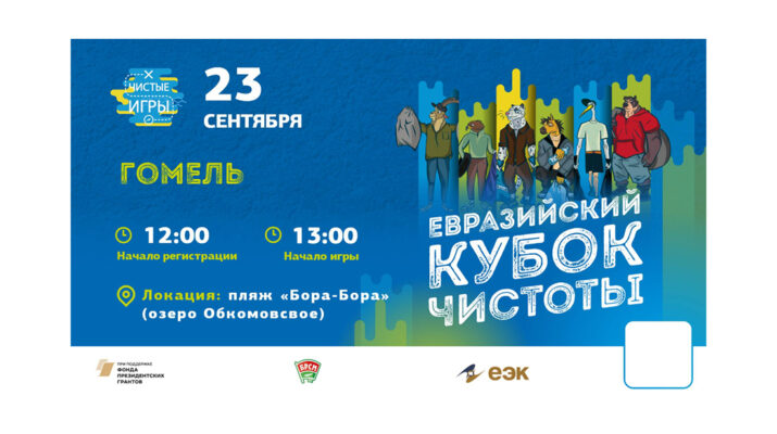 23 сентября в Гомеле возле пляжа «Бора-Бора» (озеро Обкомовское) состоятся экологические «Чистые Игры» в рамках Евразийского Кубка Чистоты. Зарегистрироваться можно по ссылке не позднее 21