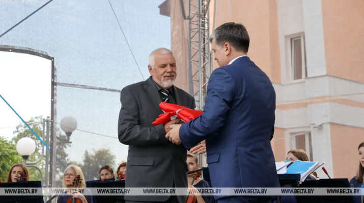 Во время торжественного пролога «80 лет мира» на сценической площадке возле Комаринского культурно-спортивного центра развернулись основное торжество. Гостей мероприятия поприветствовал заместитель главы Администрации Президента