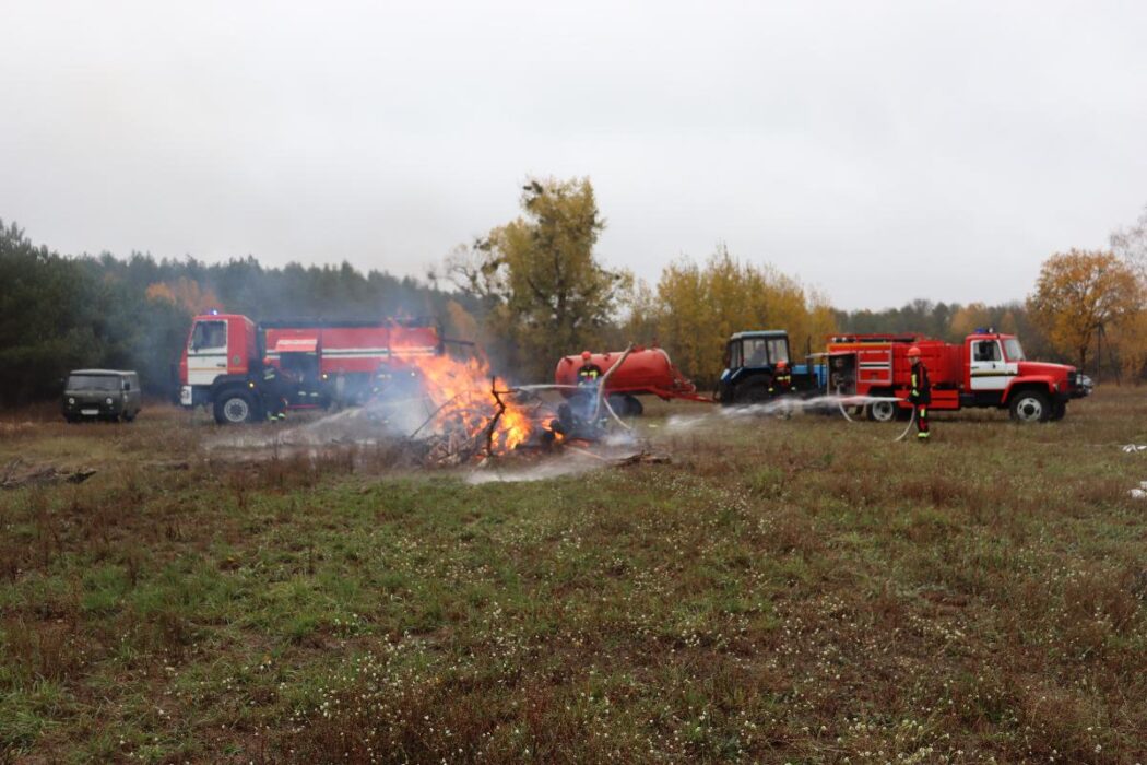 Следующий этап учений отправил участников в Колпенский сельский совет, где в близи населенного пункта Козероги произошло возгорание сухой растительности с последующим распространением огня в лесной массив, существует угроза населенному пункту. В сложившейся ситуации оперативно организуется эвакуация населения. Все задействованные службы приступают к тушению пожара.