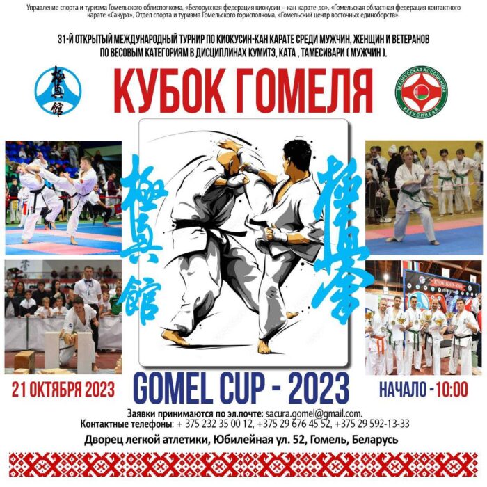21 октября 2023 года в городе Гомель, Беларусь состоятся два международных турнира по киокушин карате-до — молодёжное первенство «Сакура над Сожем», 10-17 лет и «Кубок Гомеля» в дисциплинах кумите и ката. В программу кубка включено тамесивари.