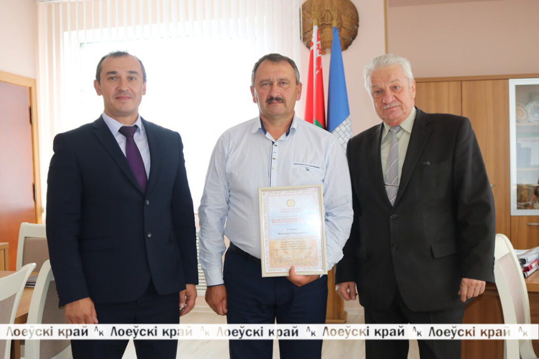 Пользуясь случаем Н. Ермаков вручил руководителю КСУП «Малиновка-Агро», председателю районного Агропромышленного союза Василию Глезову Благодарность в связи с 55-летним юбилеем, пожелав крепкого здоровья, семейного благополучия и не останавливаться на достигнутых результатах в работе.