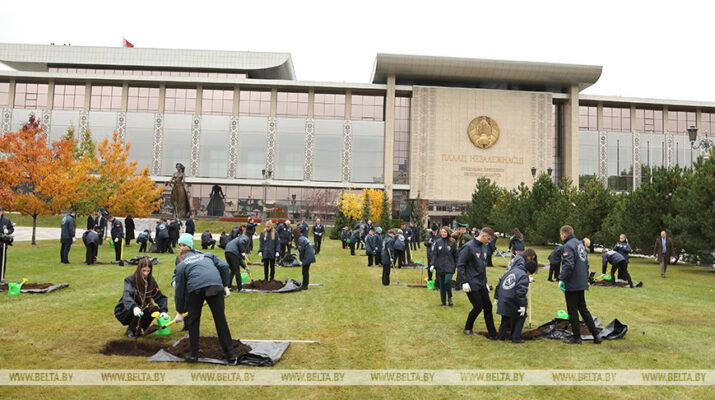 ЛУКАШЕНКО СОВМЕСТНО С МОЛОДЕЖЬЮ ЗАЛОЖИЛ АЛЛЕЮ ПОКОЛЕНИЙ У ДВОРЦА НЕЗАВИСИМОСТИ