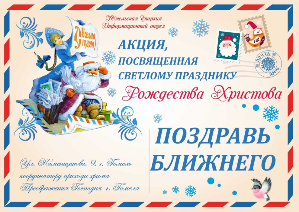 Как подчеркивают в Гомельской епархии, в этом году акция пройдет в юбилейный 10 раз. В Рождественский сезон тысячи человек принимают участие в проекте. И к празднику получают письмо, написанное от руки, в котором каждое слово наполнено теплом и заботой. Участвуйте в этом теплом обмене поздравлениями. В эпоху высоких технологий электронные сообщения доставляются за доли секунды, лишь настоящее письмо способно доставить радость, которая будет греть душу весь год.