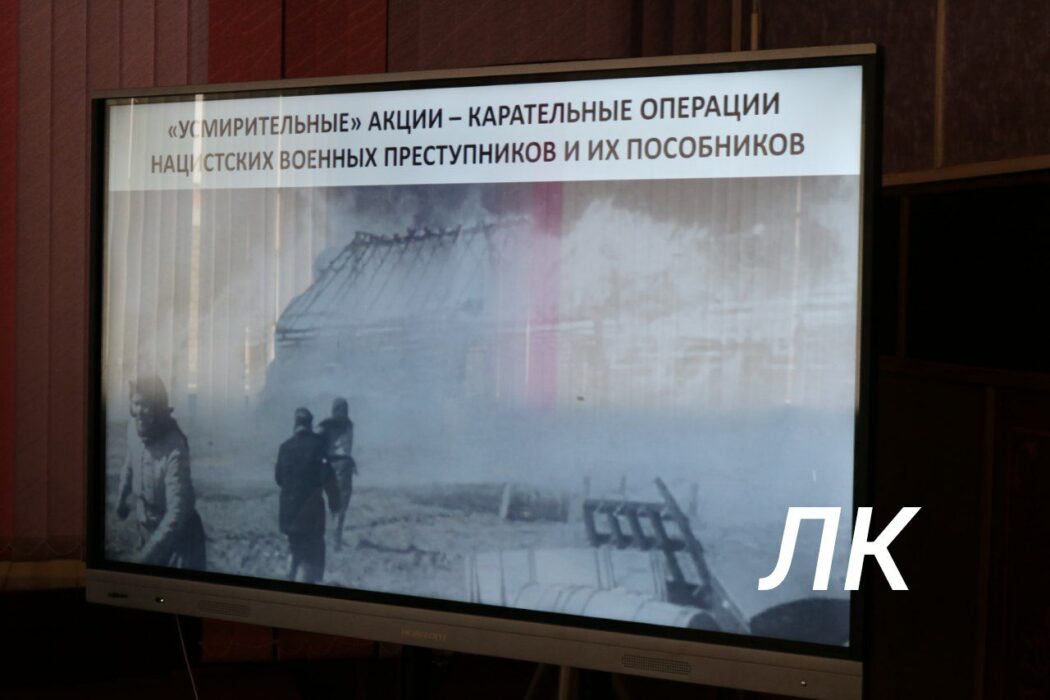 Владимир Валерьевич подробно познакомил с ходом расследования уголовного дела о геноциде белорусского народа в годы Великой Отечественной войны. На слайдах презентации, созданной Лоевской прокуратурой, были представлены выявленные новые цифры и факты кровавых преступлений фашистских палачей. Такие преступления не имеют срока давности, у боли и трагедии народа не может быть прошедшего времени.