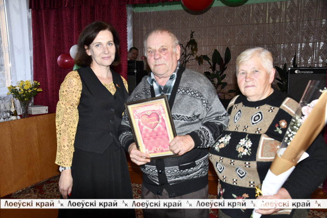 Председатель Лоевской районной организации общественного объединения «Белорусский союз женщин» Татьяна Ефименко вручила подарки юбилярам и молодым семьям.
