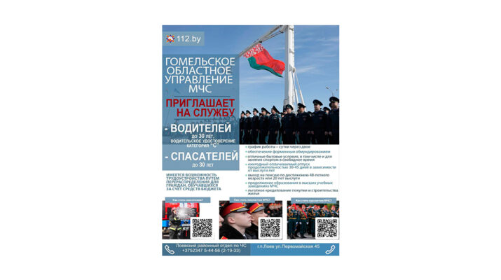 ГОМЕЛЬСКОЕ ОБЛАСТНОЕ УПРАВЛЕНИЕ МЧС ПРИГЛАШАЕТ НА СЛУЖБУ