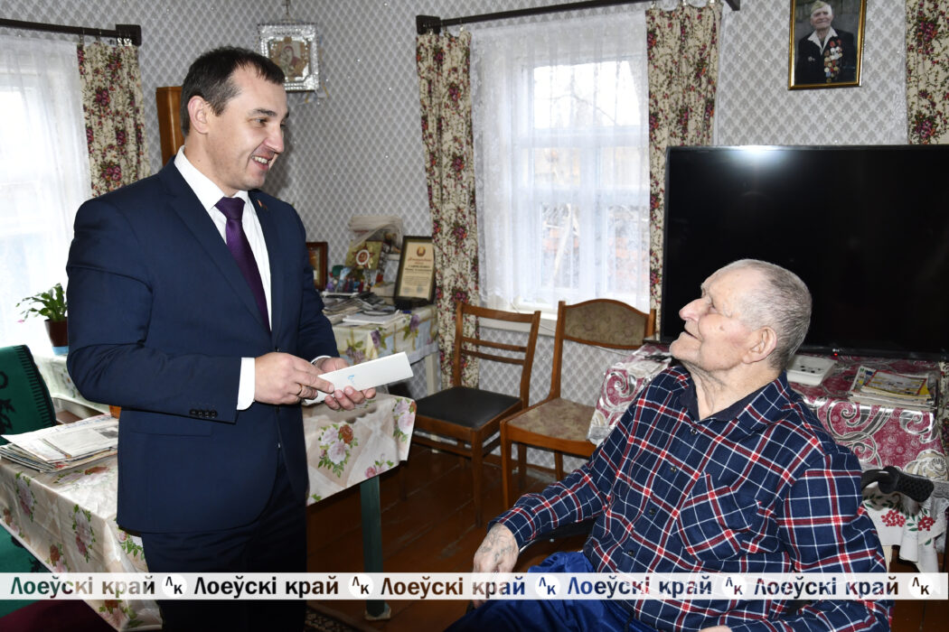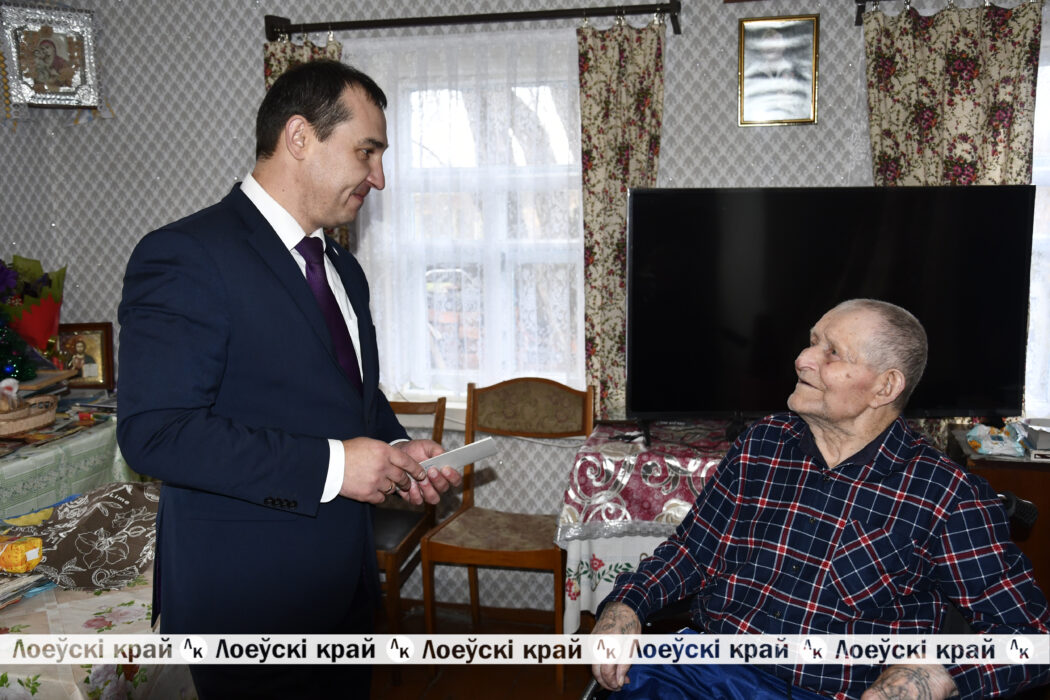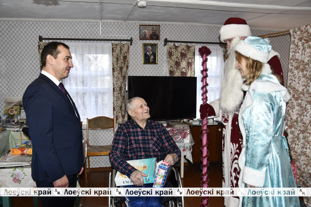Слова признательности и благодарности на кануне новогодних праздников принимал ветеран Великой Отечественной войны Иван Алексеевич Гавриленко. С наступающим Новым годом его поздравил председатель райисполкома Олег Таргонский, лидер ветеранской организации Тамара Башлакова, председатель Страдубского сельсовета Светлана Дегтеренко.
