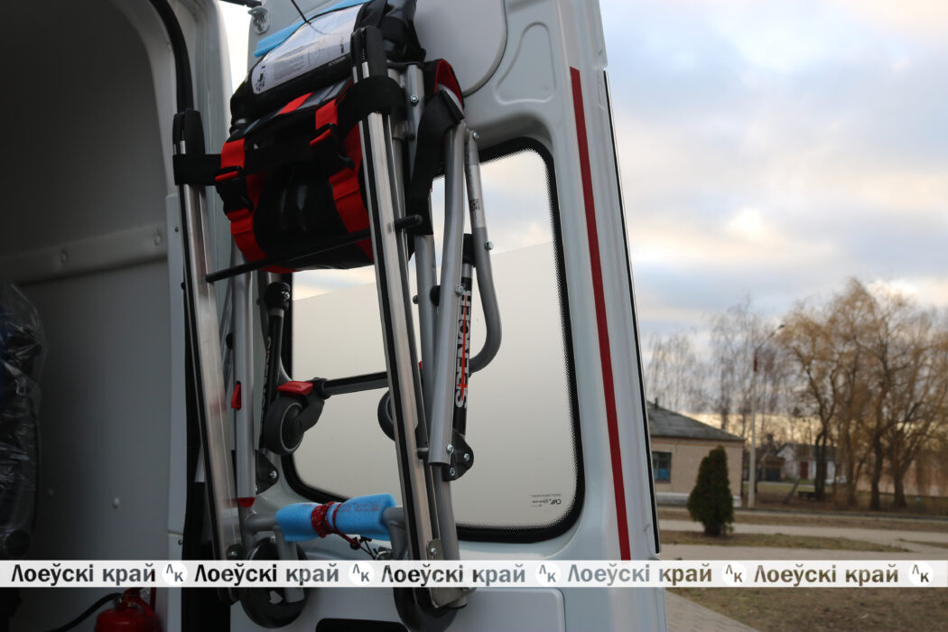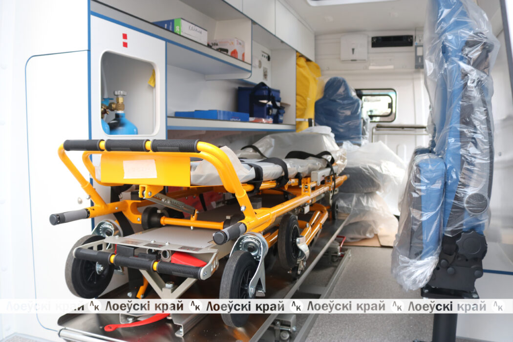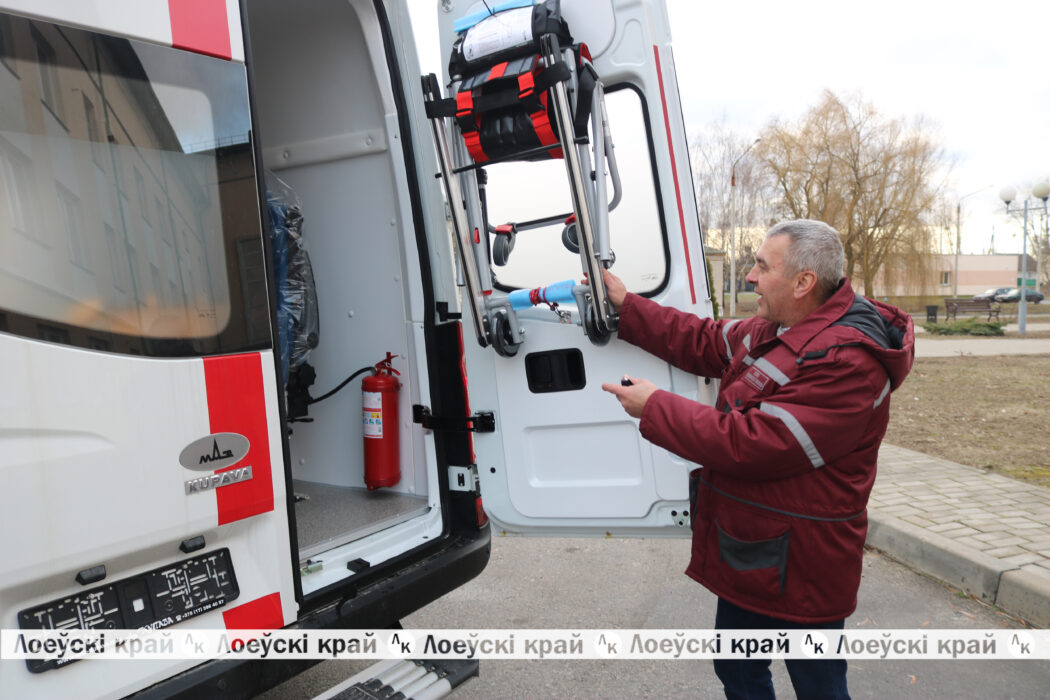 Салон автомобиля обустроен так, чтобы обеспечить максимальный комфорт и оперативность при оказании медицинской помощи, ведь всё необходимое в нём находится под рукой. Перечень медицинского оборудования и инвентаря впечатляет: кресло эвакуационное складное с системой спуска по ступенькам для транспортировки пациентов по лестницам, носилки плащевые и ковшеобразные, вакуумное устройство для фиксации тела, система подачи кислорода, встроенные контейнеры с автоматической поддержкой температуры инфузионных растворов, автомобильный бактерицидный рециркулятор и др. Новым автомобилем будет управлять водитель отделения скорой медицинской помощи Александр Макаревич. Вот-вот он помчится на первый вызов.