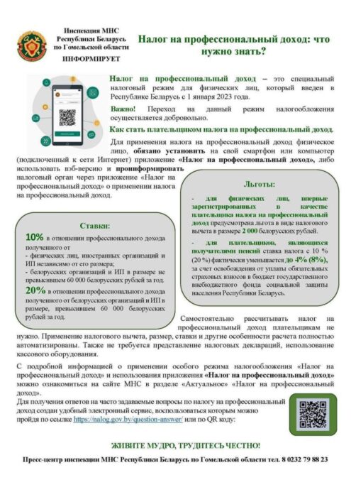 Экономика и финансы 06.12.202307.12.2023 НАЛОГ НА ПРОФЕССИОНАЛЬНЫЙ ДОХОД: ЧТО НУЖНО ЗНАТЬ? Опубликовал: Лоевский край