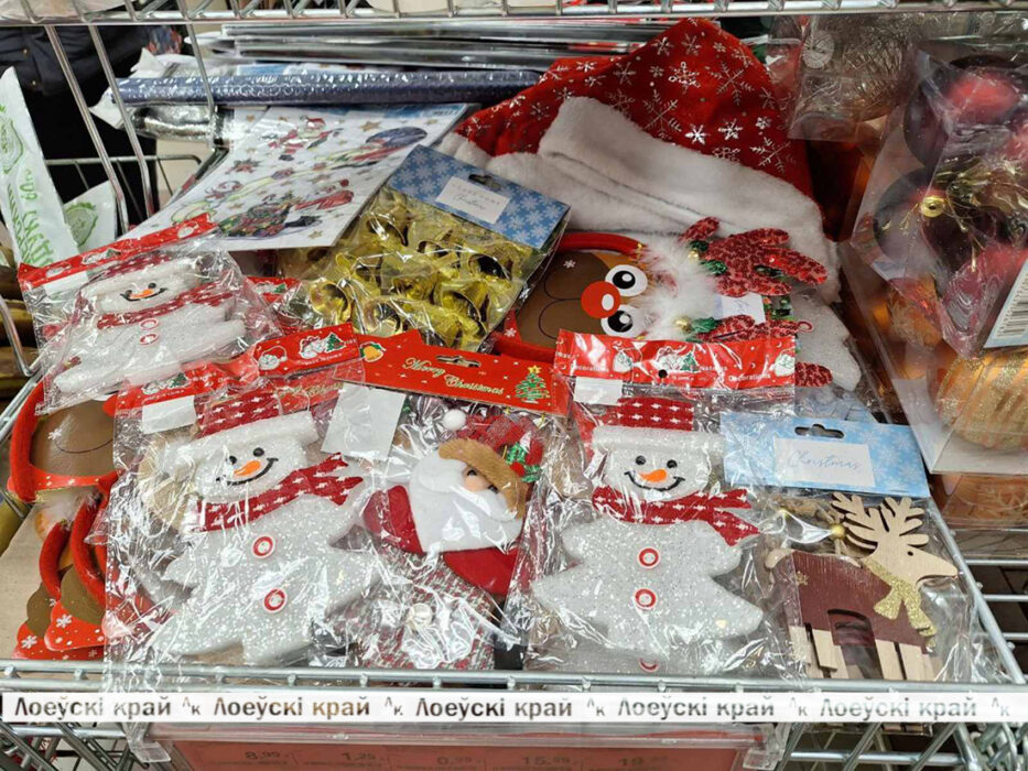 Елочные украшения представлены в ассортименте: шары, светодиодные гирлянды — на любой вкус, цвет и кошелек. Имеется сувенирная продукция: наборы посуды, обеденные салфетки, брелоки, яркие календари и не только.